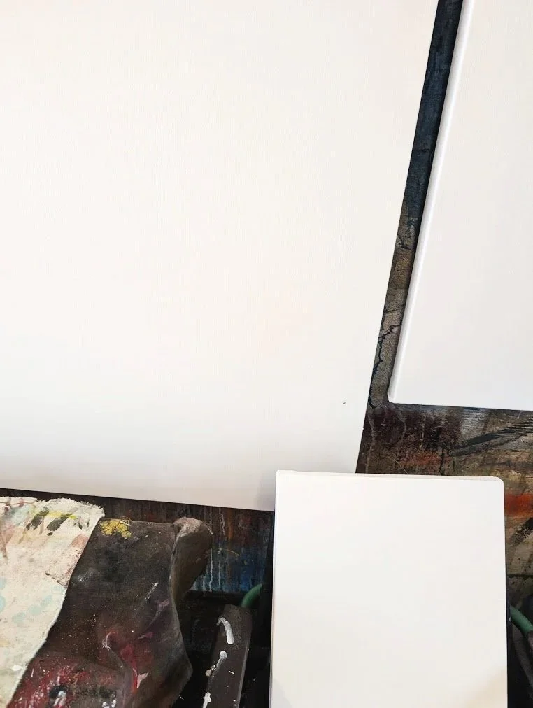 Didn’t realise I had so much primer! Two canvases, stretched and primed with one coat (plus one bloodied thumb).