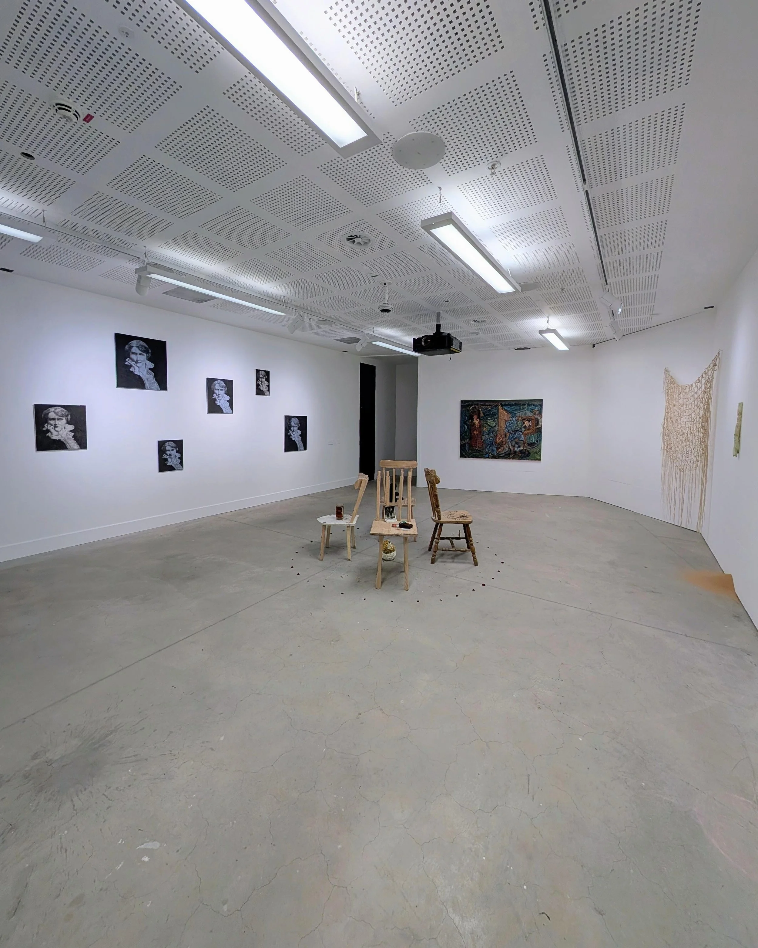 Studio session. Three latest works out of the way and down into storage. When down, four of the larger damaged works could be cut and restretched. Will be interesting to see what, if anything can be salvaged.